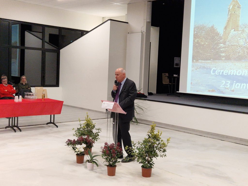 La cérémonie des vœux s’est tenue vendredi 23 janvier 2026 dans la salle des fêtes communale, fraîchement rénovée, en présence de nombreux habitants, des élus municipaux, de Monsieur le Député Thierry BENOIT, de Monsieur le Président de la Communauté de communes Denis RAPINEL, ainsi que des élus du territoire.